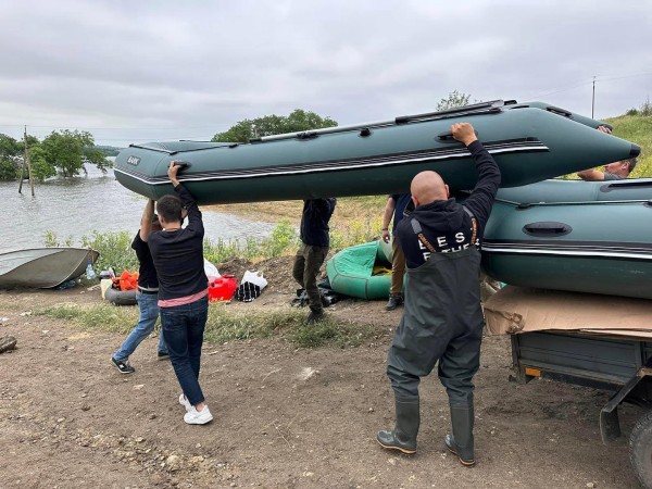 It was a very difficult day. The weather is extremely bad. But there is also a happy news: we managed to organize a crossing for two settlements with about 1800 people, which are completely separated from the land due to flooding caused by the terrible explosion at the Kakhovka hydroelectric power station. We delivered more than five tons of food and drinking water to the residents. I am grateful to God for our strong and united team, which helped us to cope with such a difficult task. Together we are a force
