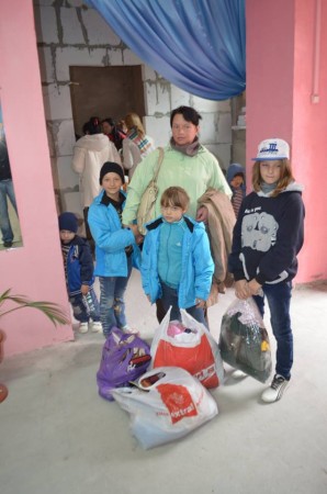 The action passed and more than 20 large and low-income families received warm clothes, shoes and children's toys.